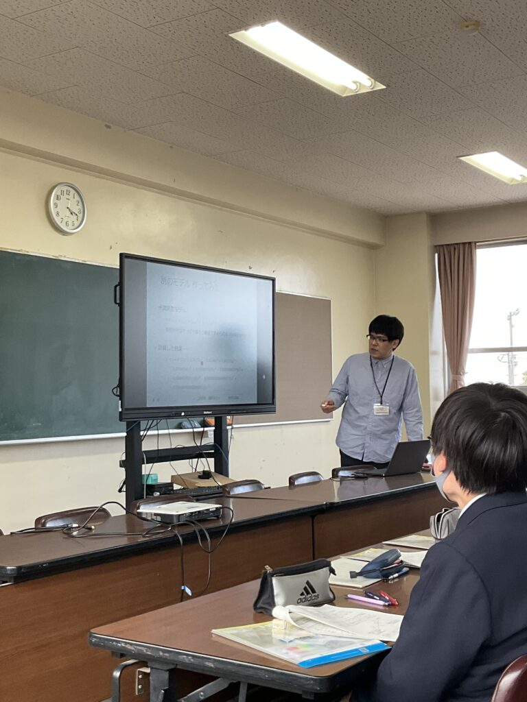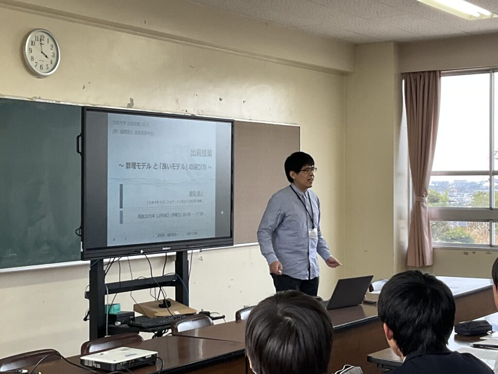 2025年12月8日(月)、福岡県立須恵高等学校にて、倉田澄人助教による出前授業が行われました。対象は高校一年生の52名で、50分間の授業が、会議室にて行われました。