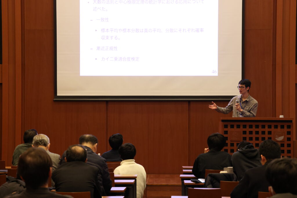 2025年12月11日-12日に、今年度で3回目となる産業数理統計チュートリアルを開催いたしました。産業界や行政機関、研究職、大学院生・学部生など、様々なバックグラウンドをお持ちの42名の皆様にご参加いただきました。講義後には、受講者の方々から講師へ積極的に質問が寄せられるなど、活発な意見交換が行われ、統計学が実務や研究の現場で強く求められている側面を改めて実感する機会となりました。終了後に実施したアンケートでは、「第一線で活躍されている研究者の先生方から直接レクチャーを受けることができる貴重な機会だった」「ぜひ来年も開催してほしい」といったご意見をいただきました。一方で、「参考文献を提示してほしい」といったご要望も寄せられており、今後のチュートリアル運営における検討課題として活かしてまいります。今回のチュートリアルで得られた知見が、参加者の皆様の今後の実務や研究にお役立ていただければ幸いです。