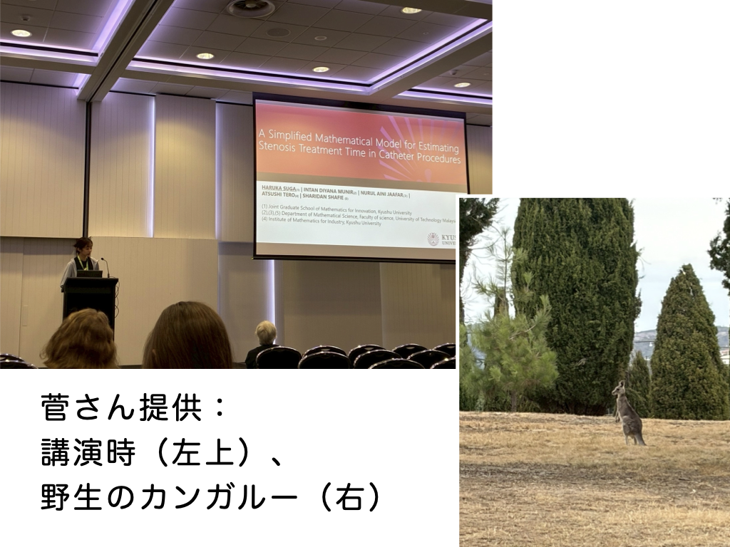 本学会では、生物や医療など様々な分野で数学を応用した研究が行われていることを知ることができ、数学の可能性が広いことを実感することができました。また、オーストラリアでは学生であっても堂々と身振り手振りを加えながら研究内容を発表しているのが印象的でした